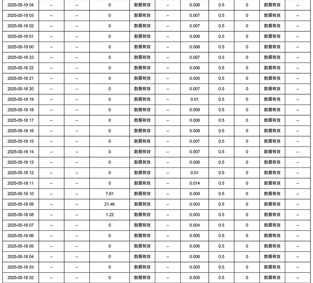 車間排口在線小時(shí)數(shù)據(jù)2025.5