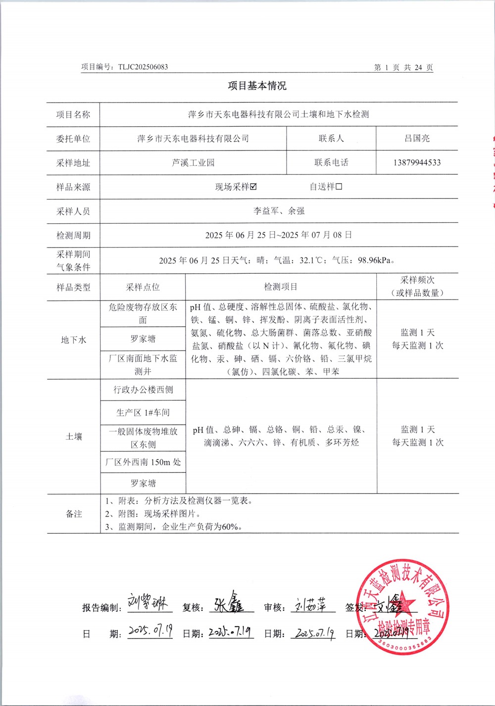 天東電器土壤和地下水檢測(cè)2025年